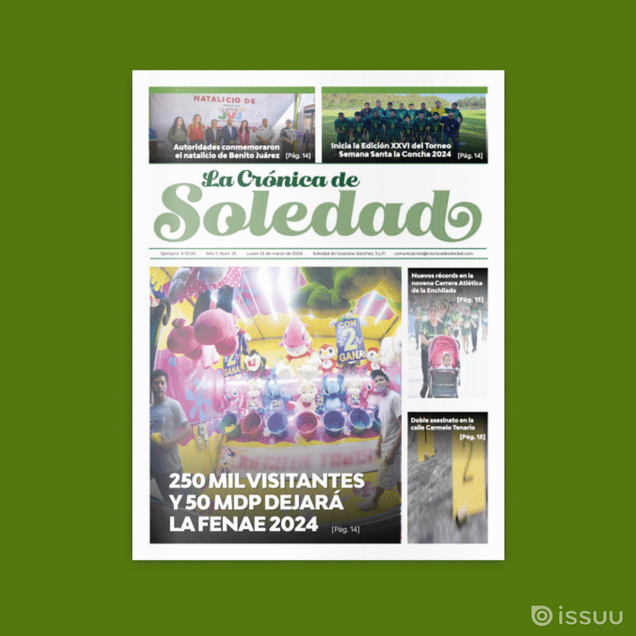 250 MIL VISITANTES Y 50 MDP DEJARÁ LA FENAE 2024. Autoridades conmemoraron el natalicio de Benito Juárez. Inicia la Edición XXVI del Torneo Semana Santa la Concha 2024. Nuevos récords en la novena Carrera Atlética de la Enchilada. Doble asesinato en la calle Carmelo Tenario.