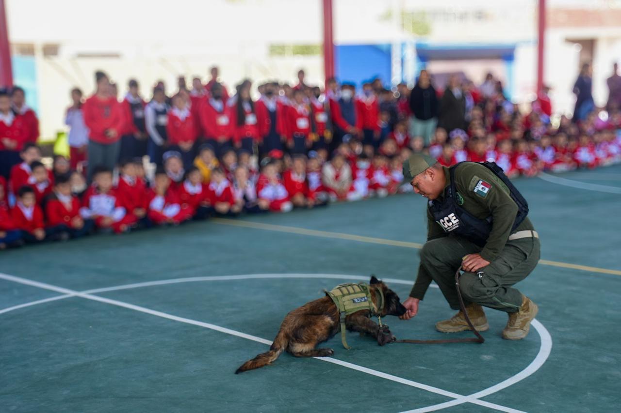 “Es muy importante que las y los niños de nuestras escuelas conozcan el trabajo que realiza la Guardia Civil Estatal y la Guardia Nacional, así como el valioso apoyo que brindan los animales de las unidades caninas de ambas autoridades”, resaltó la funcionaria.