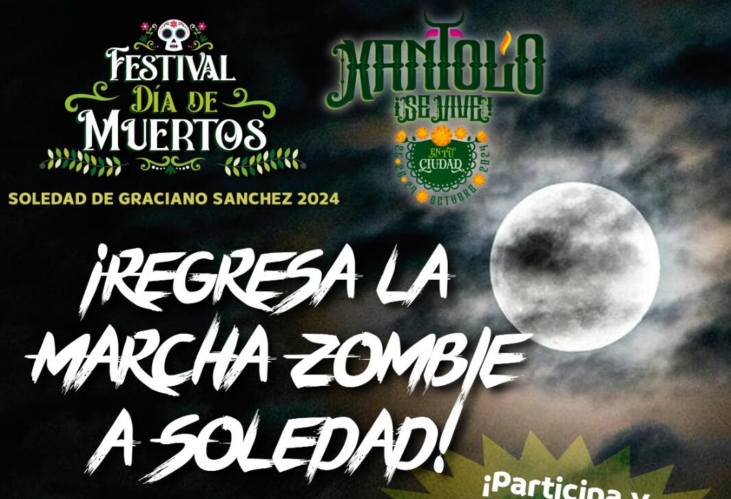 El Ayuntamiento de Soledad de Graciano Sánchez invita a toda la población a sumarse a la esperada Marcha Zombie, que regresa este 31 de octubre para transformar las calles de la Cabecera Municipal en un escenario de criaturas escalofriantes, risas contagiosas y creatividad inagotable, en el marco de un evento que rescatará lo mejor del Xantolo y Día de Muertos, y se combinará con actividades que unen a las familias y disfrutan personas de todas las edades.