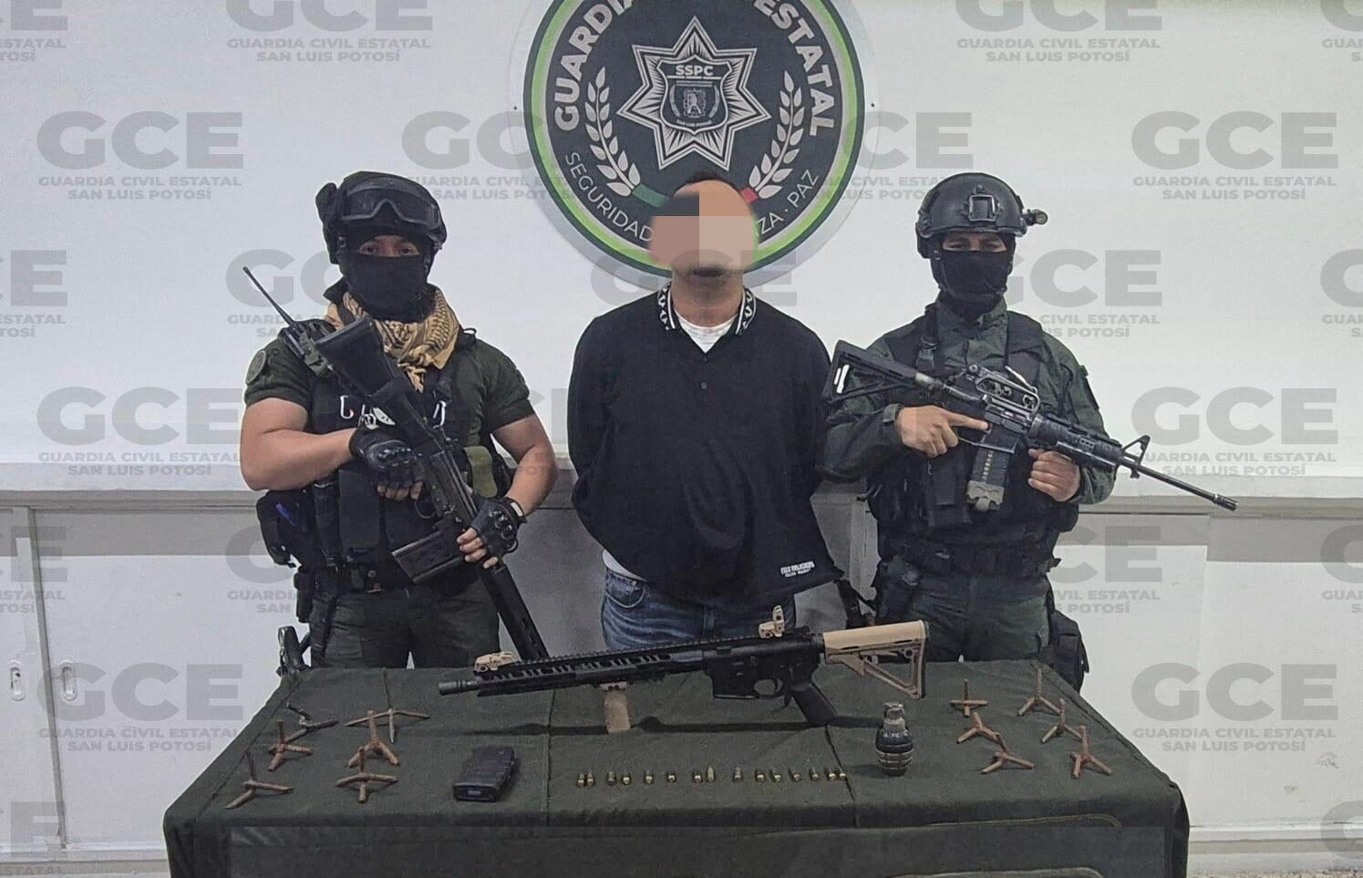 Como parte de las acciones operativas y de inteligencia de la Guardia Civil Estatal, un hombre identificado como Marco N., alias “El Alacrán”, fue detenido en Ciudad Valles. Este sujeto, de 33 años y originario de Matamoros, Tamaulipas, está señalado como presunto jefe de plaza de un grupo delictivo que operaba en municipios de la Huasteca potosina. Su captura ocurrió el viernes 21 de febrero en la colonia Buenos Aires, en el marco del operativo “Huasteca Segura”, cuando intentó evadir a las autoridades huyendo a bordo de una camioneta GMC Sierra blanca, modelo 2021, sin reporte de robo.