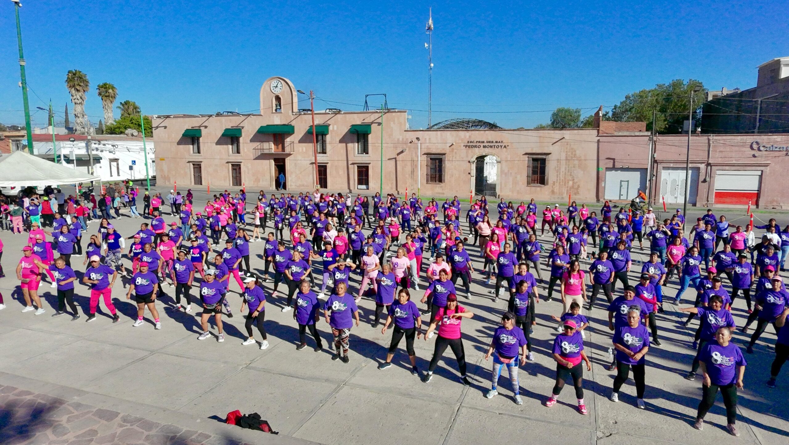 Desde las 8:30 horas de la mañana, la jornada deportiva iluminó la explanada de color morado, al conmemorarse hoy el Día Internacional de la Mujer, una fecha en la que se hace un llamado social al reconocimiento, impulso y protección de los derechos políticos y sociales de las mujeres, niñas y adolescentes.