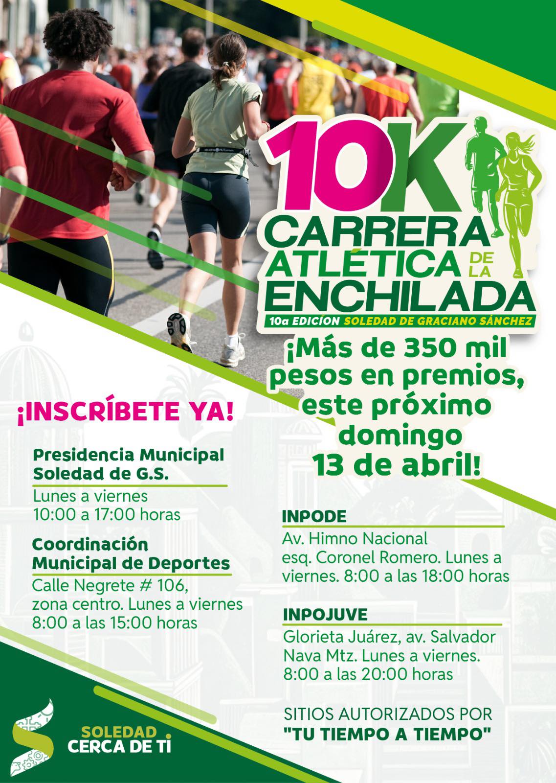 La Carrera Atlética de la Enchilada, uno de los eventos más esperados del año, se celebrará el próximo domingo 13 de abril. Con una impresionante bolsa de premios de más de 350 mil pesos, esta competencia promete ser una experiencia única tanto para corredores profesionales como para aficionados.
