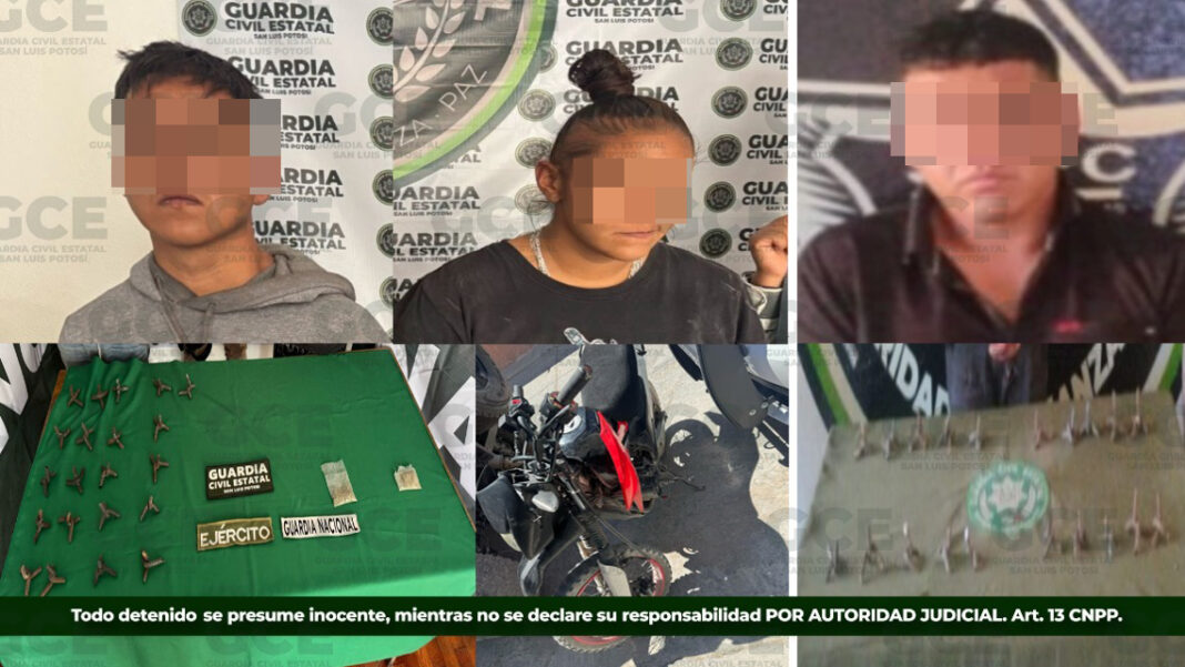 Agentes de la Guardia Civil Estatal detuvieron en distintas acciones a tres personas con 21 artefactos metálicos conocidos como “poncha llantas” y droga, quienes son señalados de vigilar y entorpecer las labores de las autoridades policiacas.