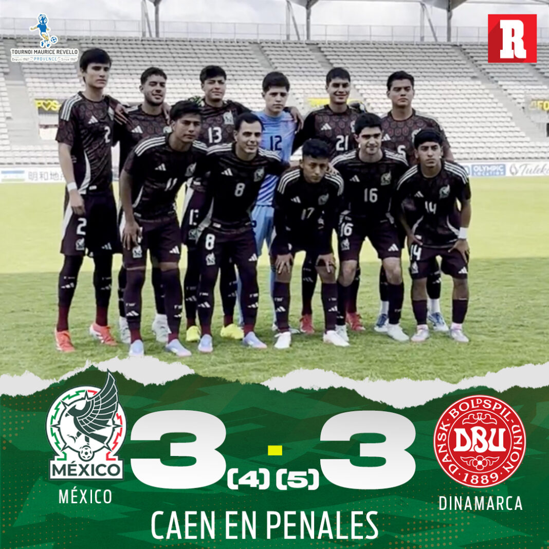 La Selección Mexicana Sub-20 inició su participación en el Torneo Maurice Revello 2025, celebrado en Francia, con un empate 3-3 ante Dinamarca que terminó en derrota para el equipo tricolor en la tanda de penales, donde los europeos se llevaron el punto extra tras imponerse 5-4.