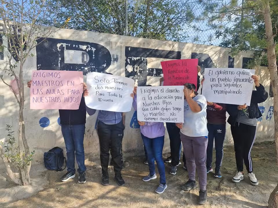 Padres de familia de la telesecundaria de la comunidad Cándido Navarro tomaron este miércoles las instalaciones en protesta por la falta de maestros. Con pancartas y bloqueos, exigieron a la Secretaría de Educación estatal una solución urgente a esta problemática que, aseguran, pone en riesgo el derecho a la educación de sus hijos.