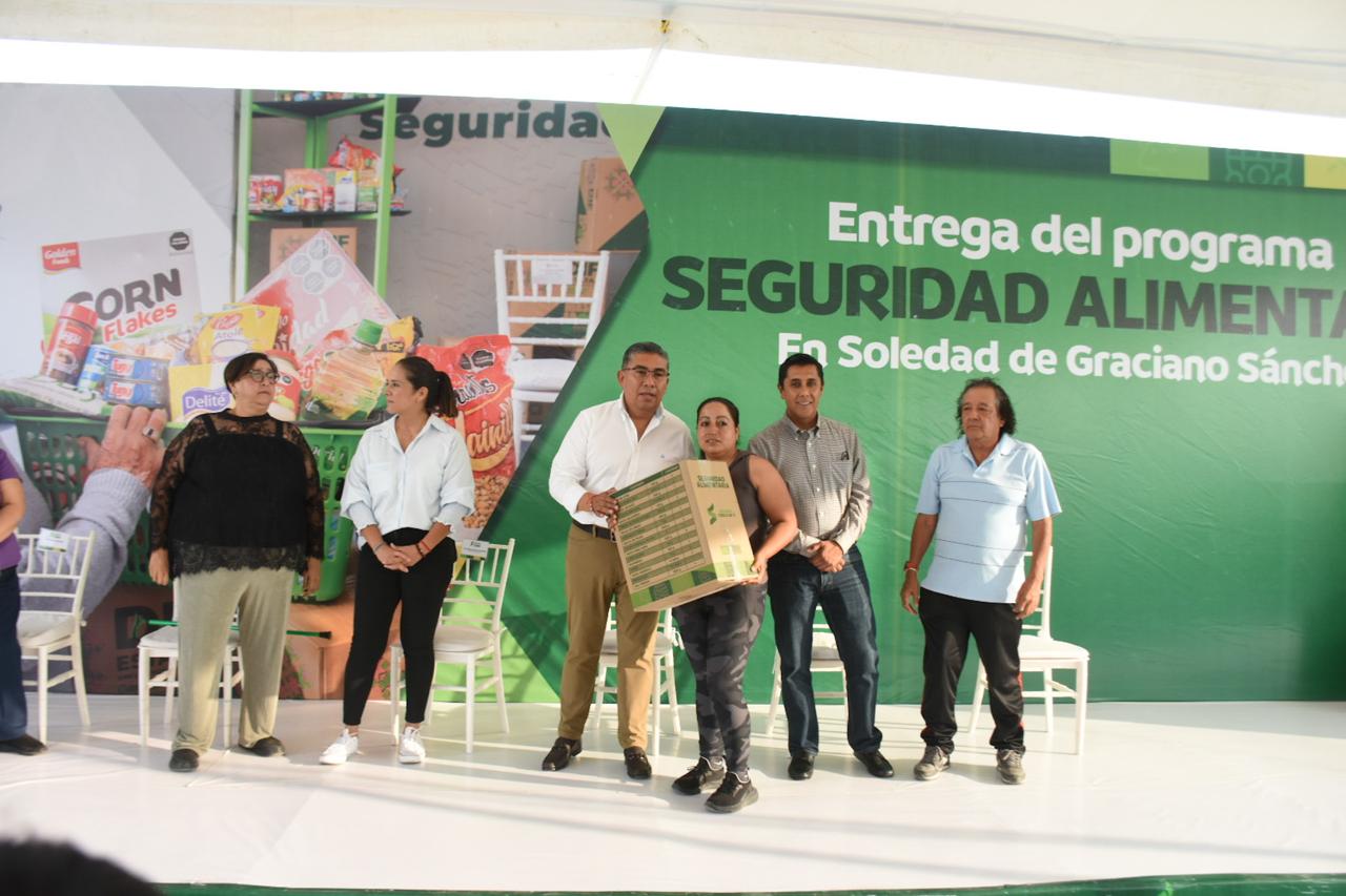 Más de 30 mil familias soledenses han sido beneficiadas a través del programa “Seguridad Alimentaria”, impulsado por el Ayuntamiento de Soledad de Graciano Sánchez. Este jueves, el alcalde Juan Manuel Navarro Muñiz encabezó una nueva entrega de despensas en la colonia Ciudad Real, al norte del municipio.