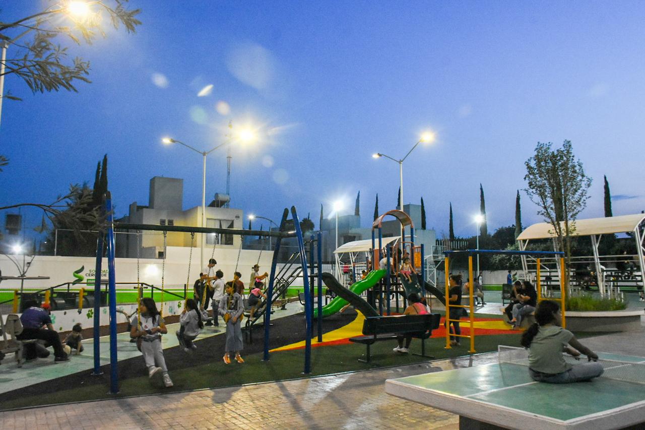Con una meta final de contar con 150 Parques Urbanos en todo el municipio, este Gobierno municipal avanza con cercanía y paso firme; hoy, chicos y grandes se desenvuelven de manera personal mediante actividades al aire libre en entornos seguros y con iluminación LED, lo que les permite convivir, ejercitarse y jugar hasta horas de la tarde o noche, fortaleciendo la unión vecinal y dando nuevo sentido al espacio público.