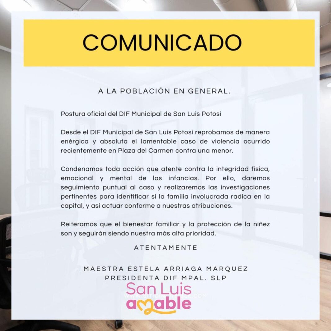 La institución señaló que realizará las investigaciones correspondientes para determinar si la familia involucrada reside en la capital potosina. En caso de confirmarse, se iniciará el proceso de intervención conforme a sus atribuciones.