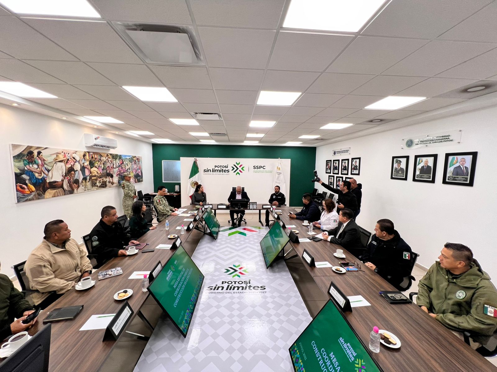 La mesa se complementó con la asistencia de representantes del Gobierno Federal, el Centro Nacional de Inteligencia, Secretaría del Bienestar, Guardia Nacional, el Ejército Mexicano, Fiscalía General de la República (FGR), FGESLP, Policía de Investigación (PDI), Guardia Civil Estatal, Guardia Civil comisionada en Villa de Pozos, así como de la Secretaría de Seguridad y Protección Ciudadana Municipal (SSPC) de la capital.