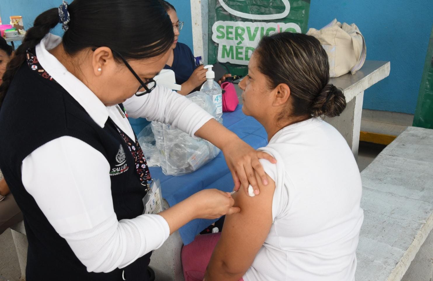 Del 7 al 9 de julio, se aplicaron con éxito la vacuna triple viral (sarampión, rubéola y parotiditis) a menores de 6 a 9 años de edad, así como la dosis de refuerzo contra rubéola y sarampión para docentes en los planteles participantes, donde los equipos especializados provenientes del IMSS Bienestar brindaron estos servicios de manera gratuita y oportuna en cada escuela.