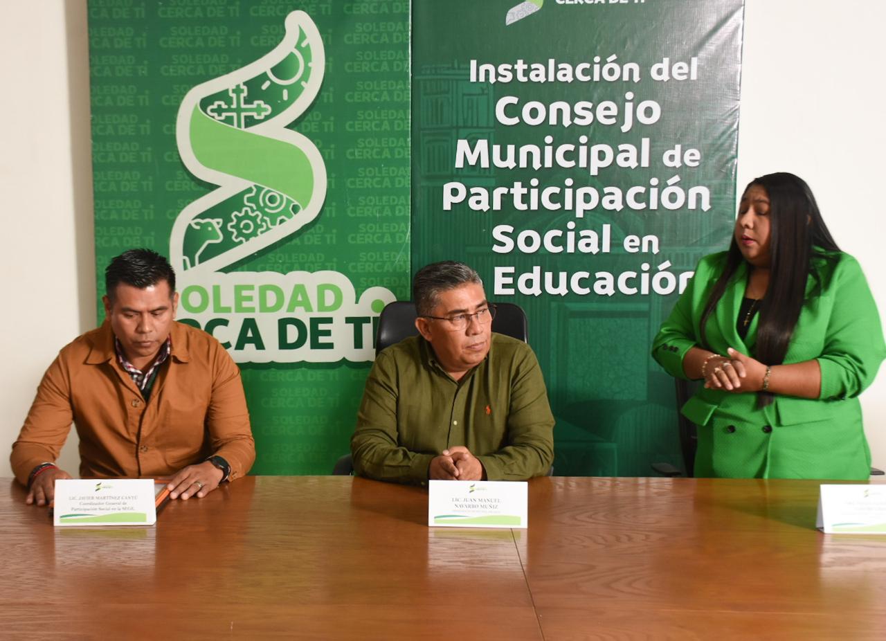 Juan Manuel Navarro Muñiz, Alcalde de Soledad de Graciano Sánchez, tomó protesta como presidente ejecutivo del Consejo Municipal de Participación Social en Educación, el cual quedó formalizado y tendrá como objetivo continuar el fortalecimiento de la calidad educativa en todo el municipio, acercando programas de prevención, más infraestructura escolar y brindar acompañamiento a autoridades escolares en la resolución de problemáticas.