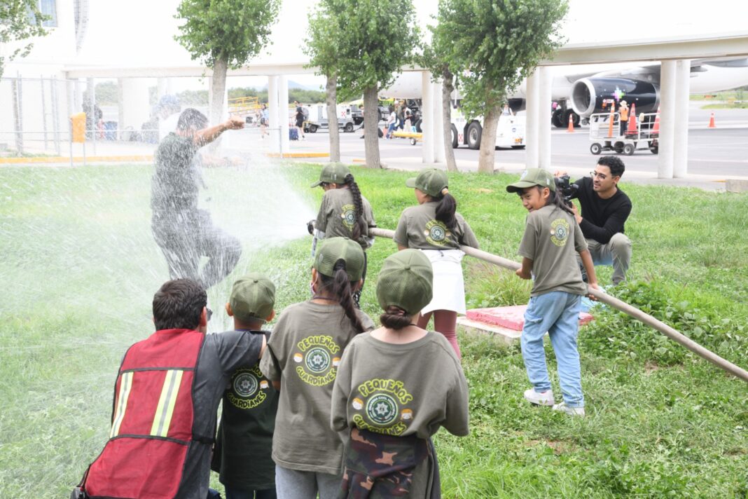Después, el grupo acudió al aeropuerto, donde personal especializado los guió por áreas de operaciones, mostraron cabinas y controles de mando y explicaron protocolos de seguridad aérea. Las niñas y niños subieron a una aeronave y conocieron sus características internas y externas. Para cerrar, el Cuerpo de Bomberos ofreció una demostración de su equipamiento: mangueras, herramientas hidráulicas y equipo de respiración autónoma. Cada participante identificó las piezas del uniforme y comprendió la labor de primera respuesta.