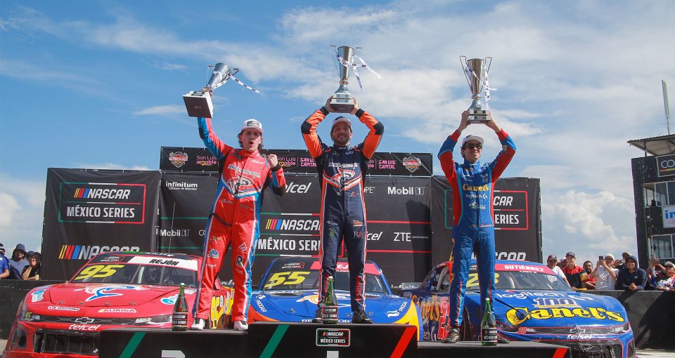 Julio Rejón, piloto de GGG-JV, se coronó en la primera carrera de los playoffs de la NASCAR México Series en el Súper Óvalo Potosino, escenario de intensos duelos y maniobras al límite. La competencia, celebrada en Zaragoza, San Luis Potosí, se definió de forma espectacular con bandera verde-blanca y cuadros, fiel al estilo de la categoría. Rejón destacó la gran labor de su equipo, agradeciendo el auto veloz que le permitió remontar y concretar el triunfo.