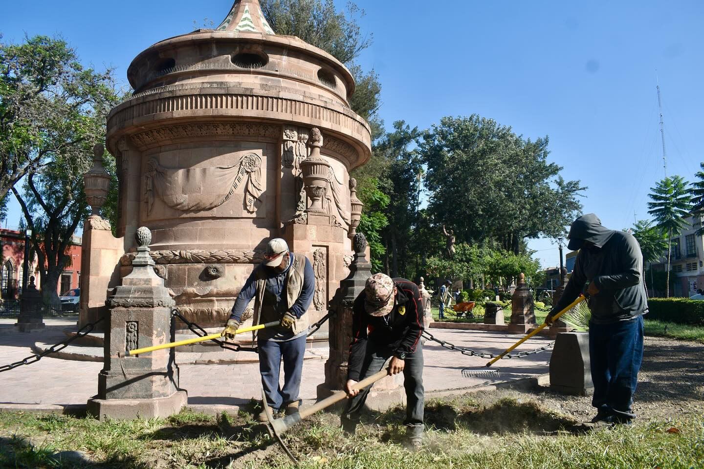 La Dirección de Servicios Municipales mejora la imagen urbana con plantaciones en la Caja del Agua y el Monumento a Morelos.