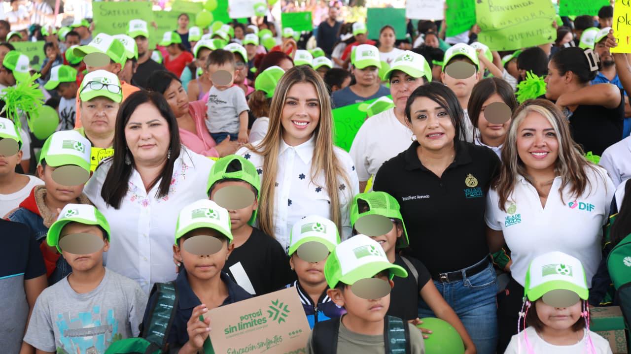El Gobierno Municipal de Villa de Pozos, encabezado por la Presidenta Concejal Teresa Rivera Acevedo, entregó mochilas y útiles escolares en Ciudad Satélite, beneficiando directamente a más de 500 alumnas y alumnos como parte del programa estatal “Educación sin límites”.