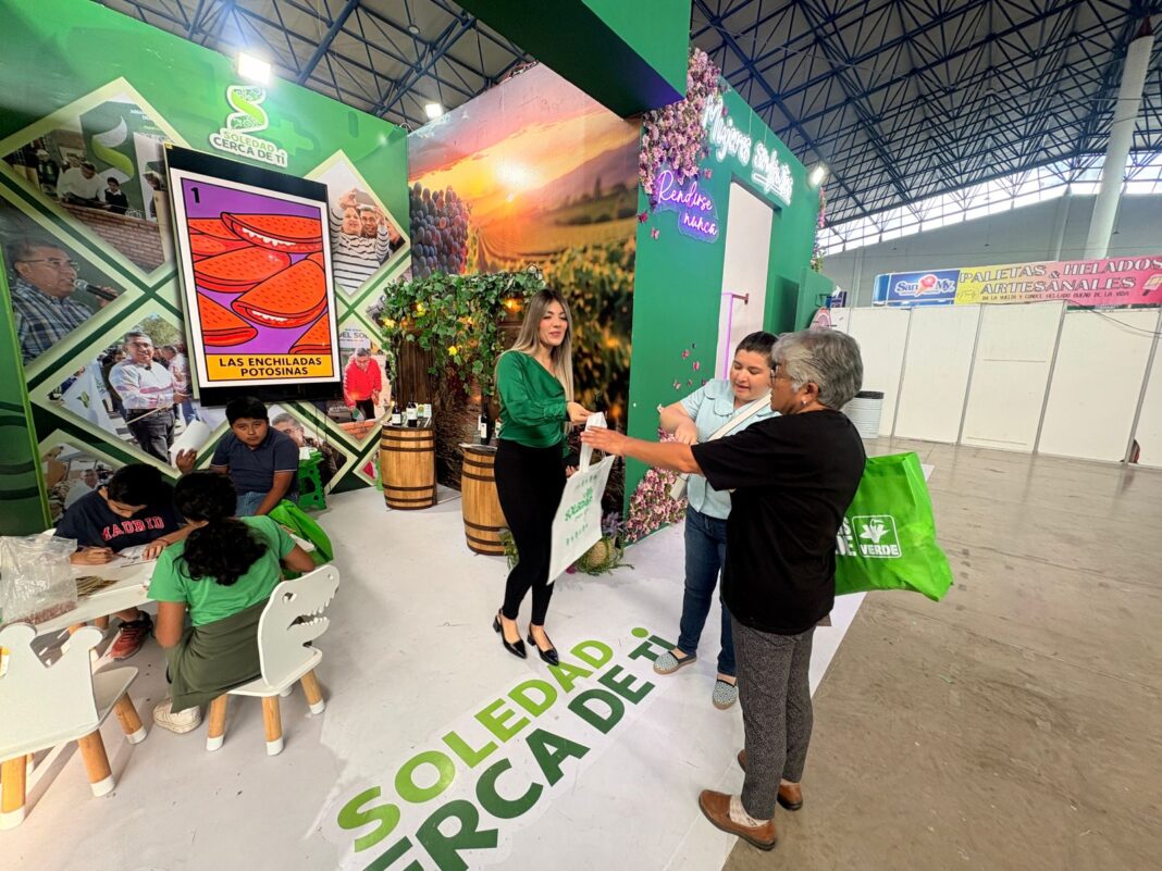 El stand también incluye una zona de fotografía que recrea un viñedo, en alusión a que Soledad de Graciano Sánchez es el único municipio del estado con tres casas productoras: Pozo de Luna, Viña Cordelia y Bodega 1881. Paralelamente, niñas y niños participan en juegos tradicionales y trivias, fortaleciendo la convivencia familiar.