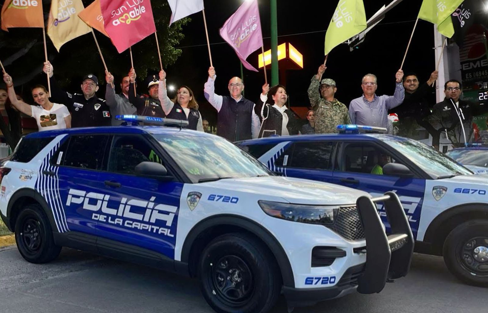 San Luis Potosí, SLP.- La noche de este domingo, el Alcalde Enrique Galindo encabezó la entrega de 53 nuevas patrullas como parte del fortalecimiento de la seguridad en San Luis Capital. El Gobierno Municipal implementó con estas unidades, equipadas con tecnología de última generación, un innovador sistema de vigilancia terrestre y de videovigilancia móvil.
