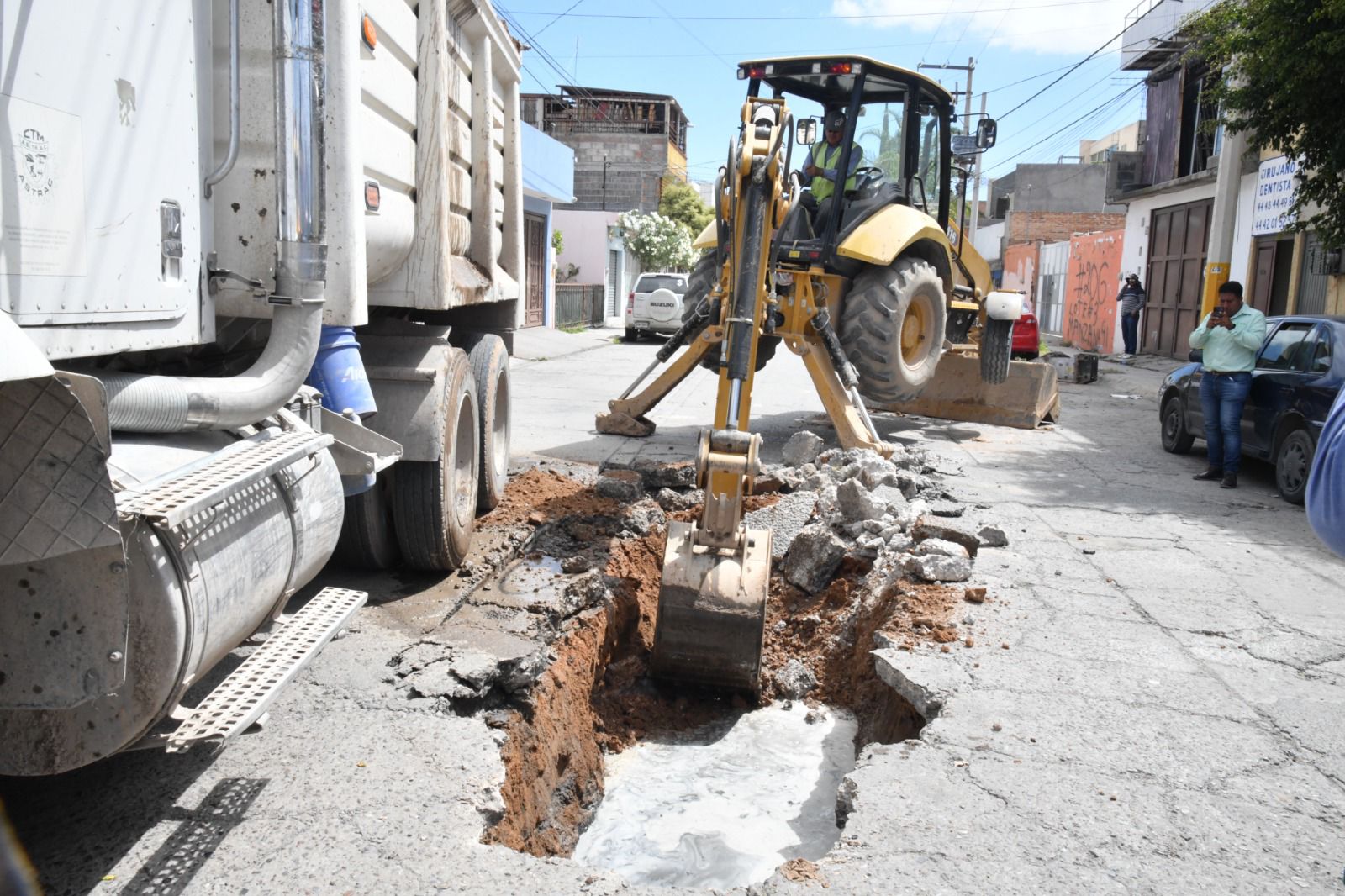 El Ayuntamiento de Soledad de Graciano Sánchez, a través de la Dirección de Infraestructura Municipal, inició los trabajos de reparación de un socavón en la calle Camino Real a Rioverde, en la colonia Villas del Potosí, donde se detectó un colapso ocasionado por una fuga de drenaje, además de realizar labores de desazolve en la red que afectaba a decenas de familias de la zona.