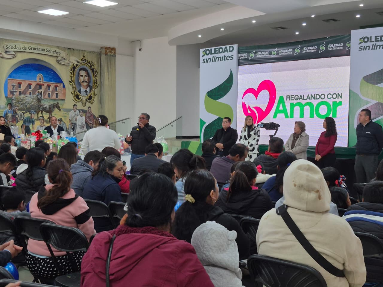 El Ayuntamiento de Soledad de Graciano Sánchez, a través de la Dirección de Turismo y Cultura Municipal, realizó la entrega de paquetes de regalos del programa “Regalando con Amor”, dirigido a niñas y niños que asisten a las Unidades Básicas de Rehabilitación 1 y 2. La actividad permitió que cada menor recibiera hasta cinco obsequios, como resultado de un proceso de recolección y coordinación con familias y organizaciones participantes.