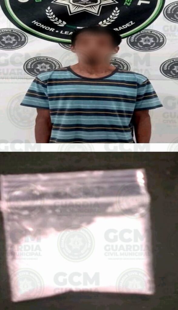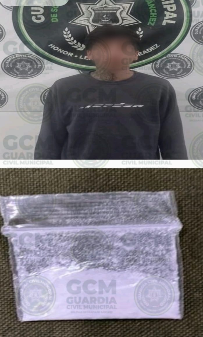 El sujeto cuenta con diversos arrestos previos por el mismo delito, siendo considerado reincidente.Mauricio “N” de 22 años, fue detectado en la Avenida Providencia, en la colonia Real Providencia, cuando escandalizaba en la vía pública, descubriéndole un envoltorio con piedra granulada semejante a la metanfetamina llamada “cristal”.