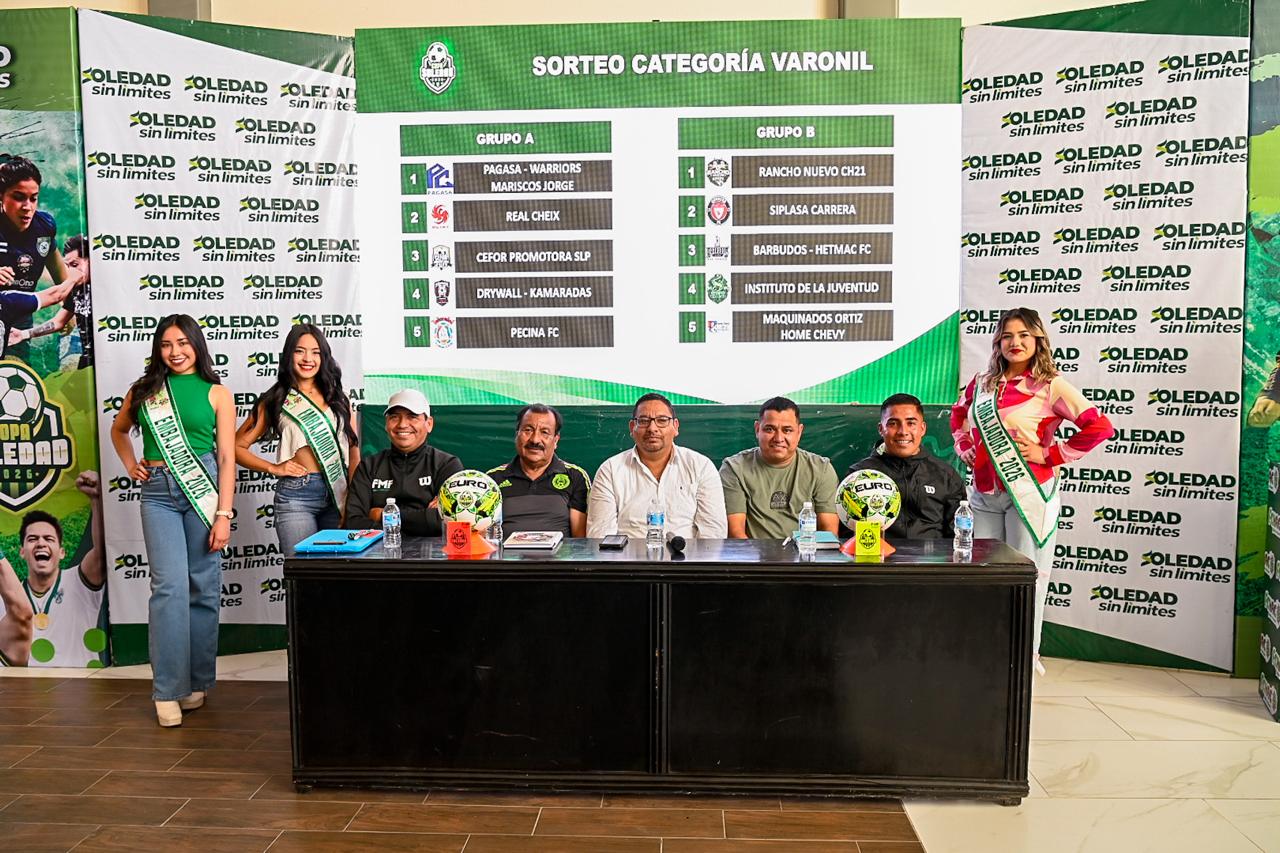En la rama varonil, al Grupo A se encuentra encabezado por Pagasa-Warriors-Mariscos Jorge, acompañado por Real Chiex, CEFOR Promotora San Luis Potosí, DryWall-Kamaradas y Pecina FC; mientras que el Grupo 2 lo encabeza el subcampeón de la Copa Soledad 2025: Rancho Nuevo CH21, seguido por Siplasa Carrera, Barbudos-Hetmac FC, Instituto de la Juventud y Maquinados Ortiz-Home Chevey.