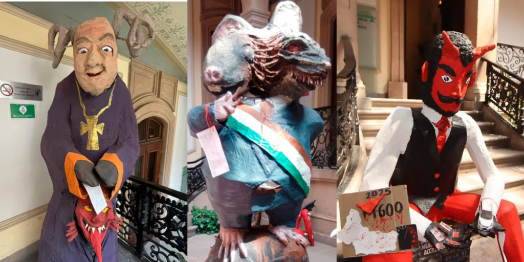 En la explanada del Museo Nacional de la Máscara se encuentran en exhibición las figuras que serán quemadas.