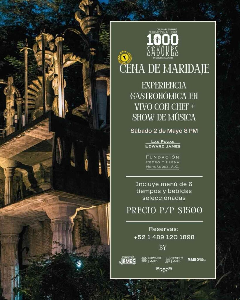Como parte de esta sinergia, el Jardín Escultórico Edward James será sede de una cena de gala con maridaje el día 2 de mayo, integrando la experiencia gastronómica con uno de los espacios artísticos más representativos a nivel internacional.