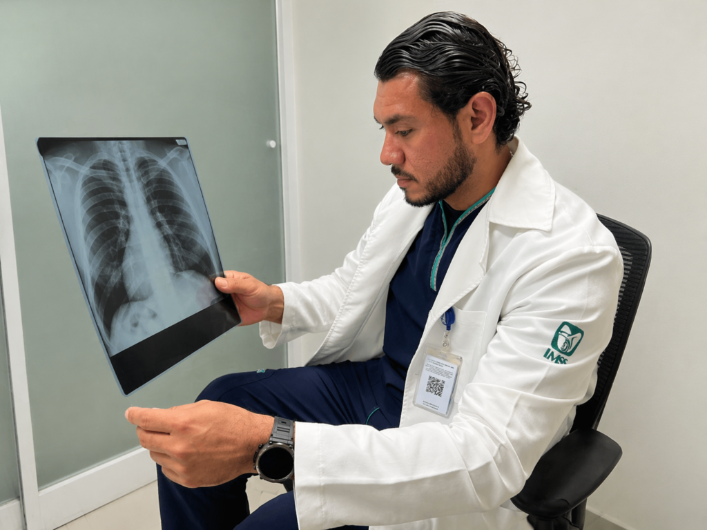 Señaló que el IMSS cuenta con un equipo multidisciplinario integrado por especialistas en neumología, cardiología, gastroenterología, nutrición, otorrinolaringología y endocrinología, así como personal de inhaloterapia y Trabajo Social, quienes brindan atención integral.